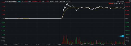 7 月 2 日午后,重庆钢铁(SH601005,股价 1.41 元,市值 124.81 亿元)、柳钢股份(SH601003,股价 4.26 元,市值 109.17 亿元)涨停,钢铁 ETF(515210)的日涨幅也达到 3.69%。