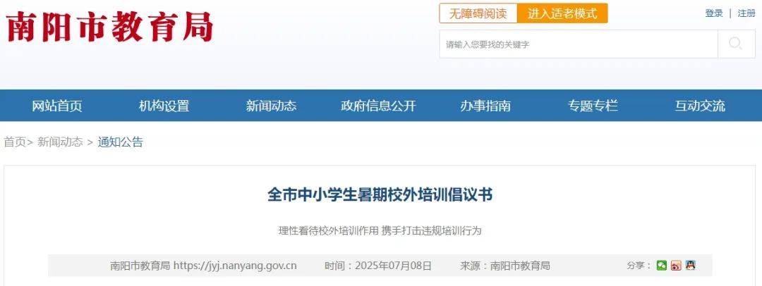南阳市面向中小学生的校外培训咨询举报电话