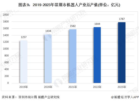 据深圳市统计局数据,2023 年机器人产业链总产值为 1787 亿元,同比增长 8.7%。