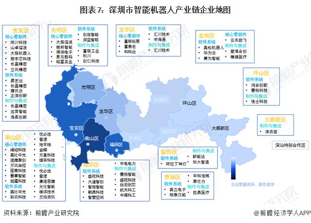 从深圳市智能机器人产业发展载体空间布局来看,在福田区、南山区、前海布局研发设计环节,在宝安区、深汕特别合作区布局研发设计和生产制造环节,形成"研发 - 制造 - 应用"闭环。