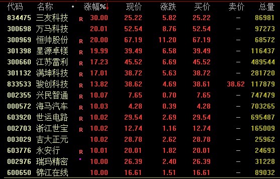 无人驾驶概念走势强劲,截至收盘,三友科技30%涨停,万马科技、恒帅股份、星源卓镁20%涨停,江苏雷利、满坤科技涨超17%。