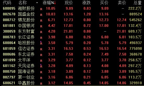 被称为“牛市旗手”的券商板块盘中强势拉升,截至收盘,湘财股份、国盛金控涨停,锦龙股份涨近7%,中国银河、东方财富超4%。值得注意的是,东方财富全日成交132.2亿元,位居A股成交额首位。