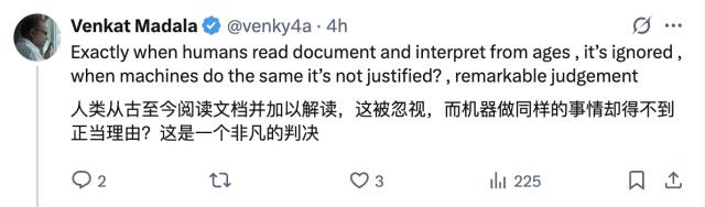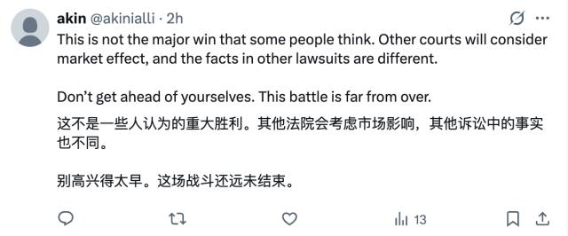有网友认为,本次裁决结果可能影响美国法院对 Open AI 和 Meta 案件的审理。