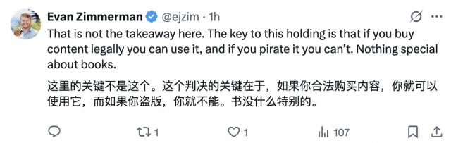 有网友简单总结为:关键在于训练使用书籍的来源是不是盗版。