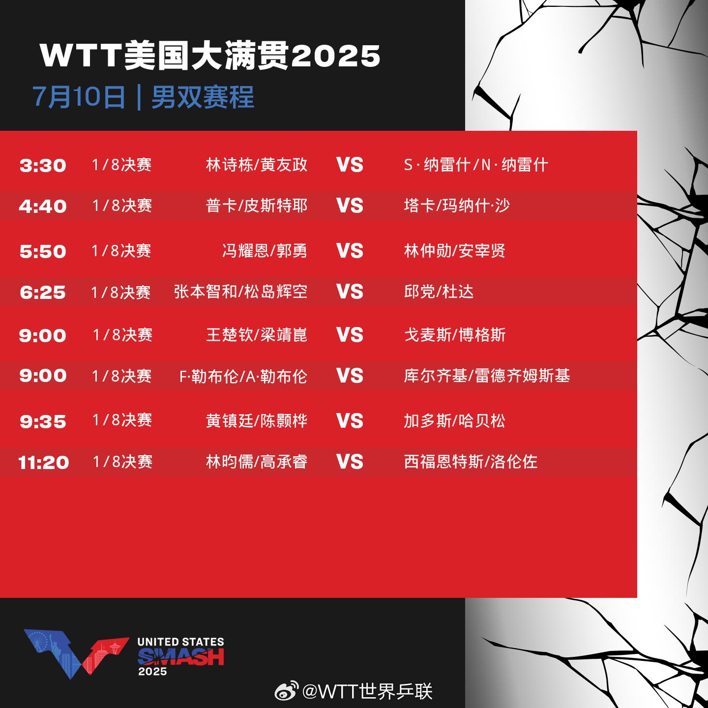 9:00王楚钦/梁靖崑 VS 戈麦斯/博格斯