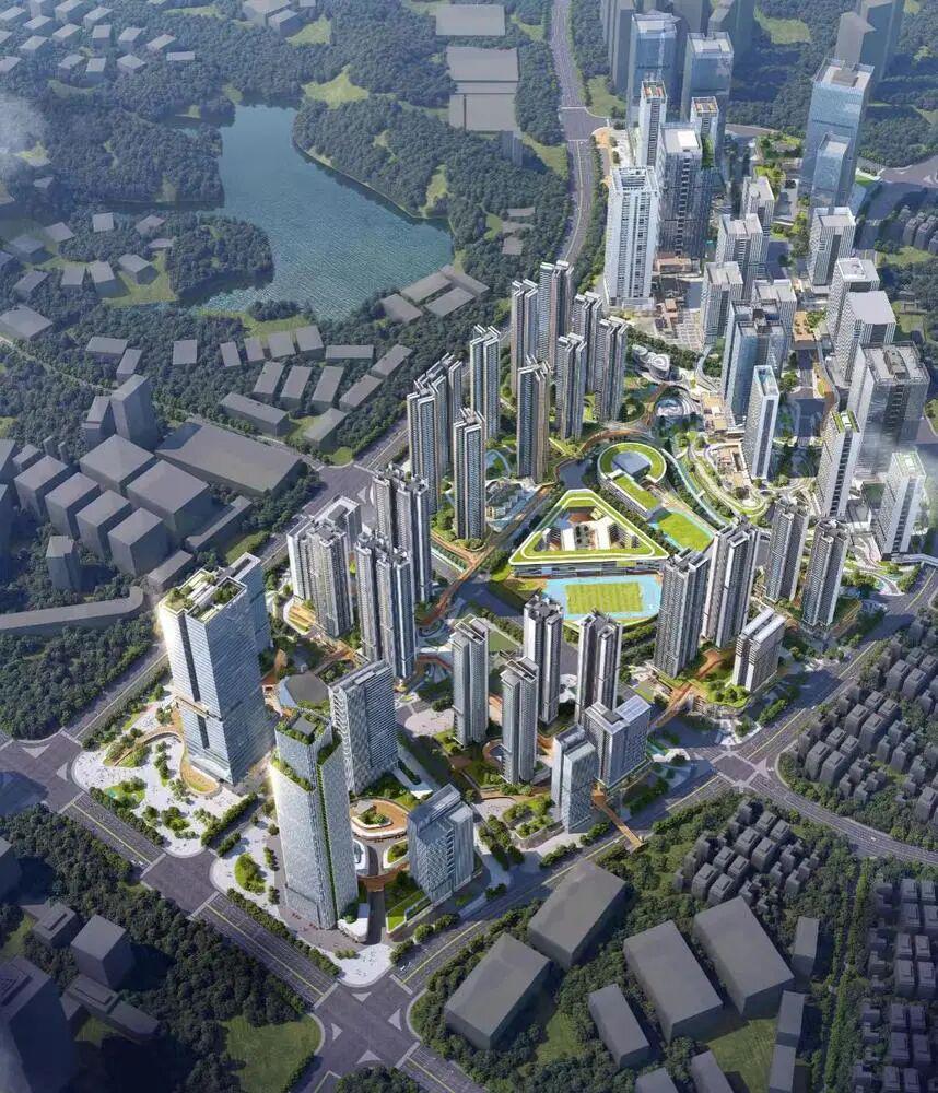项目地理位置优越,毗邻华为总部,周边配套设施完善,规划建设了大量生活配套空间,包括文化活动、教育托管、社区老年康养和生活商业配套,实现工作与生活的无缝衔接。2024年,项目入选自然资源部印发的《节地技术和节地模式推荐目录(第四批)》,并获得“中国节能低碳综合服务示范园区”“国家三星级绿色建筑认证标识(国家最高级)”等多项荣誉。